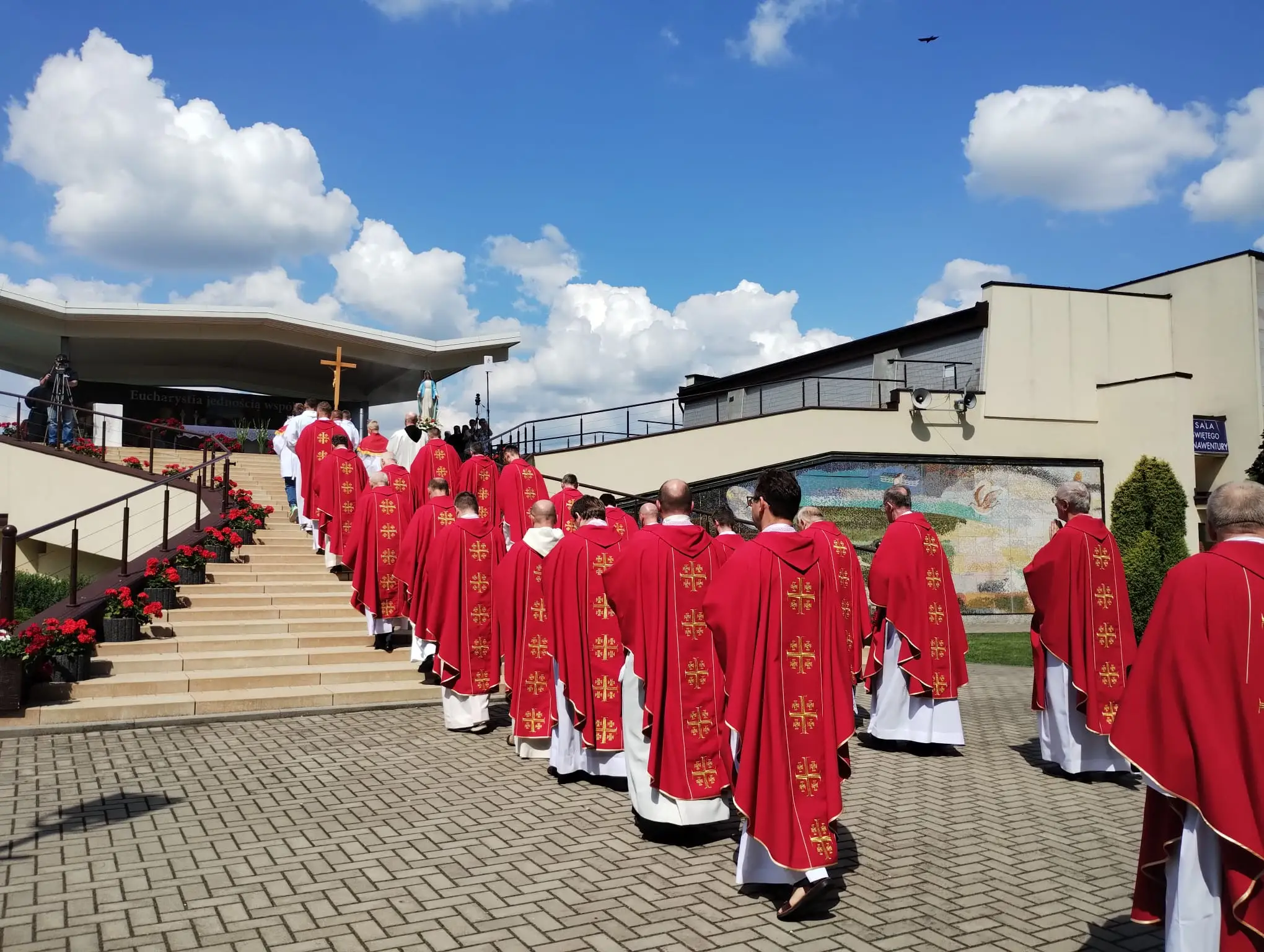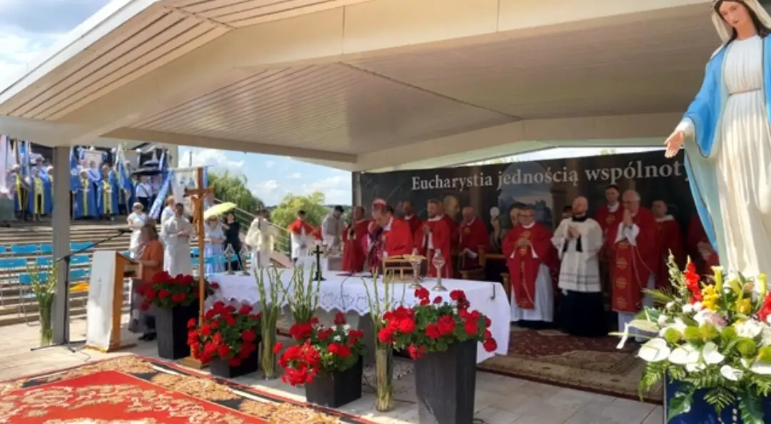 Centralnym punktem spotkania była Eucharystia, której przewodniczył i wygłosił okolicznościowe kazanie biskup pomocniczy diec. warszawskiej Rafał Markowski. Biskup zauważył, że świętość rozwijała się w Maryi przez całe życie. „Maryja pod krzyżem na Kalwarii patrzy na śmierć własnego dziecka. Nie wiemy o czym myślała, Ona po prostu była. Maryja dopiero pod krzyżem rozumie całe swoje życie, że to wszystko, co przeżywała, było przygotowaniem do tego momentu, do zgody na własne cierpienie i na śmierć własnego dziecka. Gdy Maryja pod krzyżem wypowiada swoje tak Bogu, staje się Matką Kościoła i Matką każdego z nas”. Biskup Markowski nawiązał również do życia św. Maksymiliana, w którym nie brakowało trudów i przeciwności. „Nasza wiara objawia się w trudnych sytuacjach i w naszym nieustannym powtarzaniu: Niech się dzieje wola Boża. Niezrozumienie ma nas nie zniechęcać, ale zachęcać do większego zaufania Bogu” – zauważył biskup.