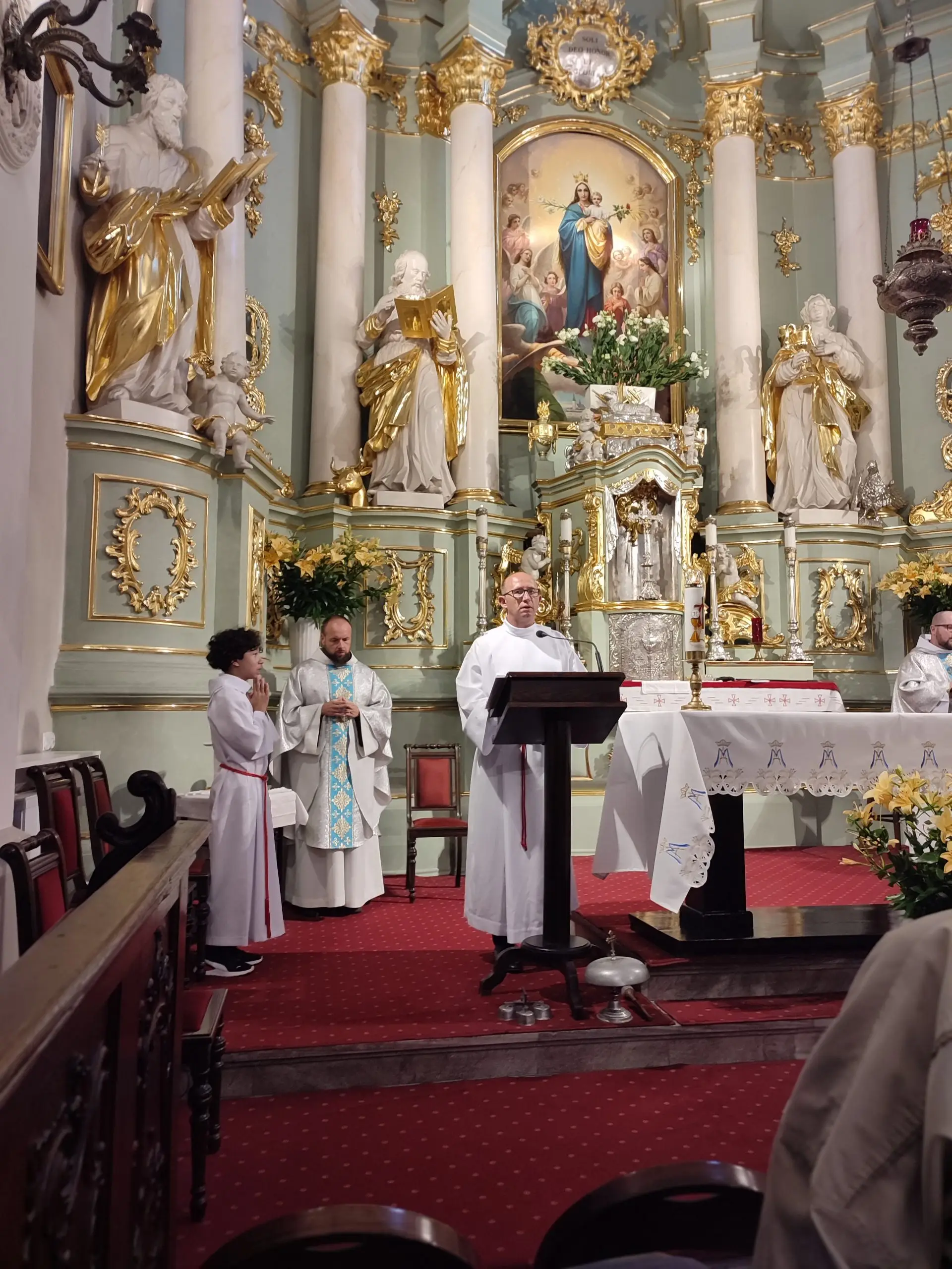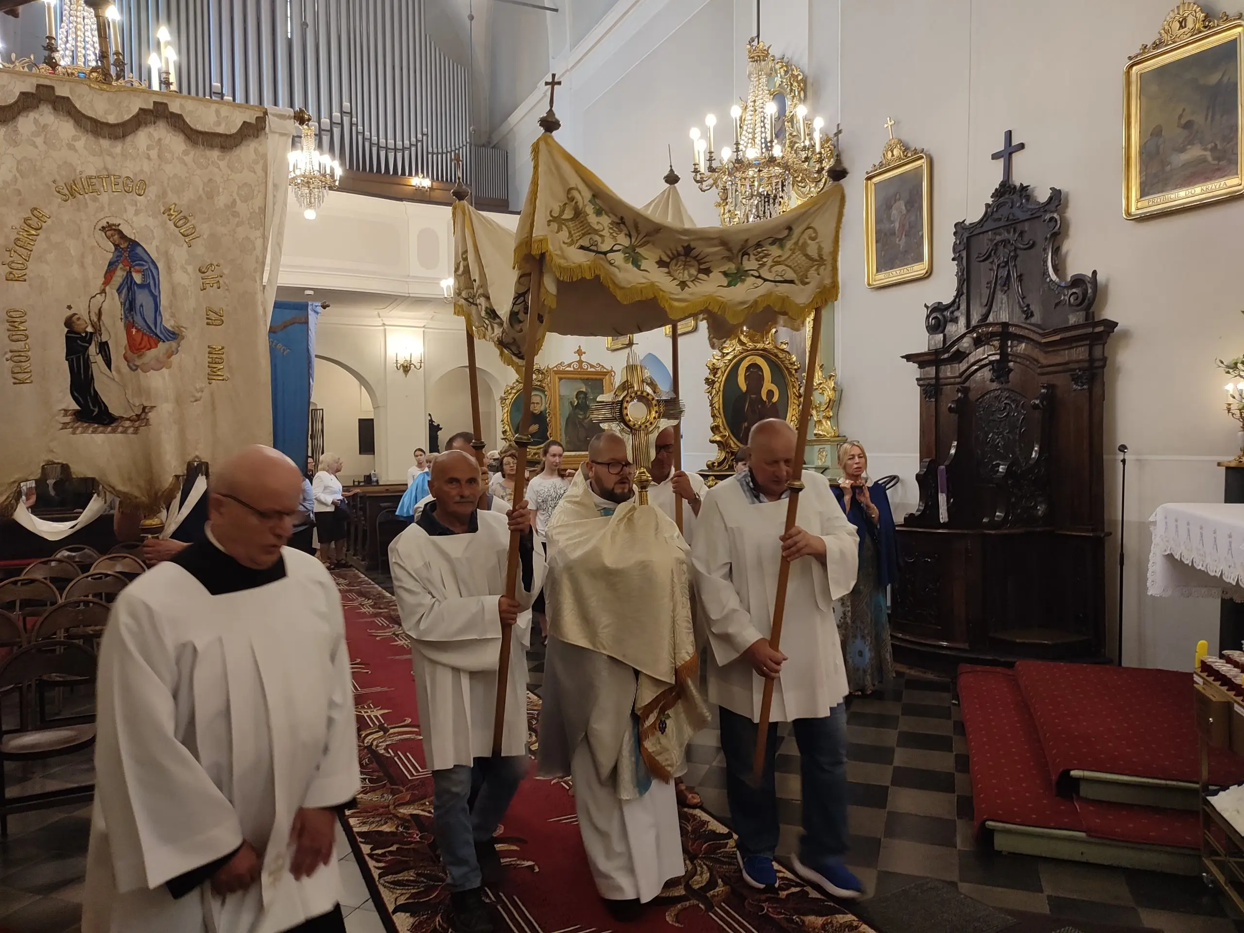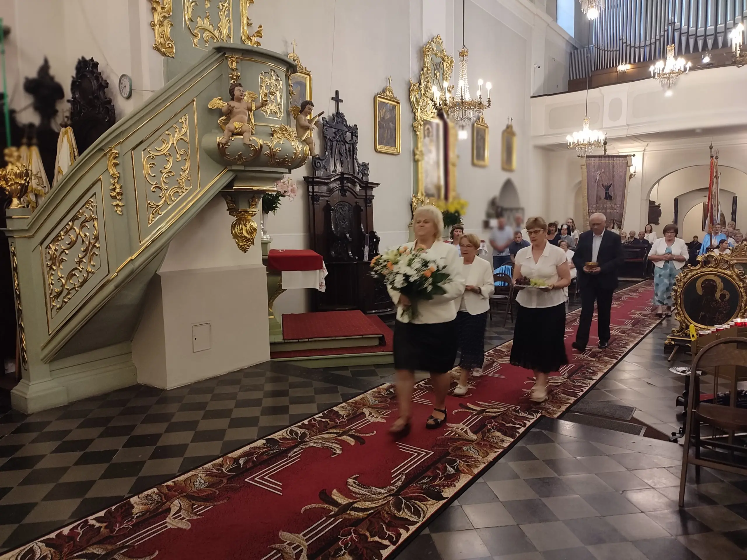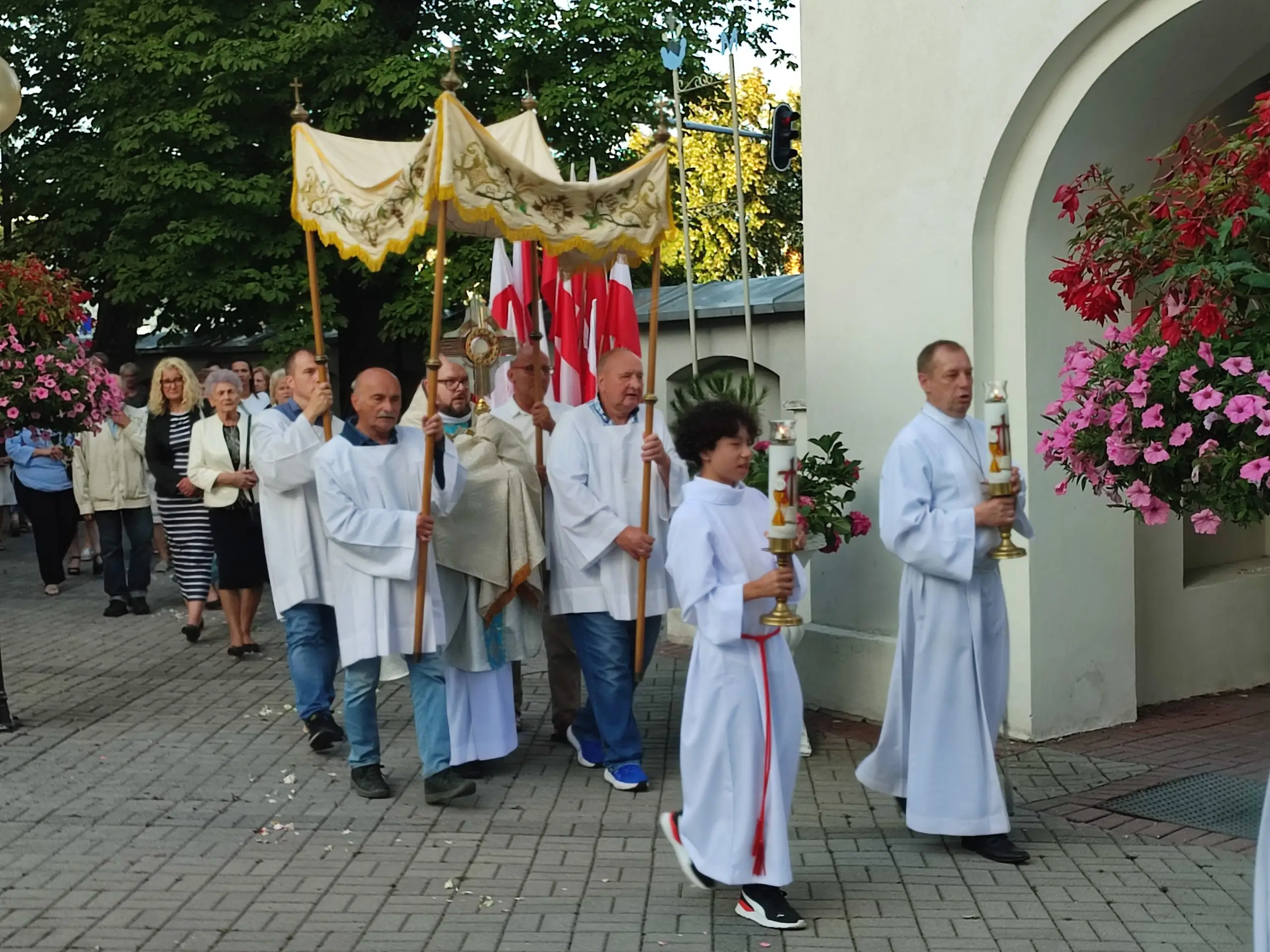 Także w naszej świątyni mogliśmy uroczyście przeżyć ten dzień, tym bardziej, że święto Królowej Aniołów zbiegło się z pierwszą sobotę miesiąca. Zwieńczeniem uroczystej sumy, była procesja Eucharystyczna z udziałem kapłanów naszego dekanatu, asysty niosącej sztandary i feretrony, Zosi sypiącej kwiaty i licznie zebranych wiernych. Chwała Bogu za ten piękny czas.