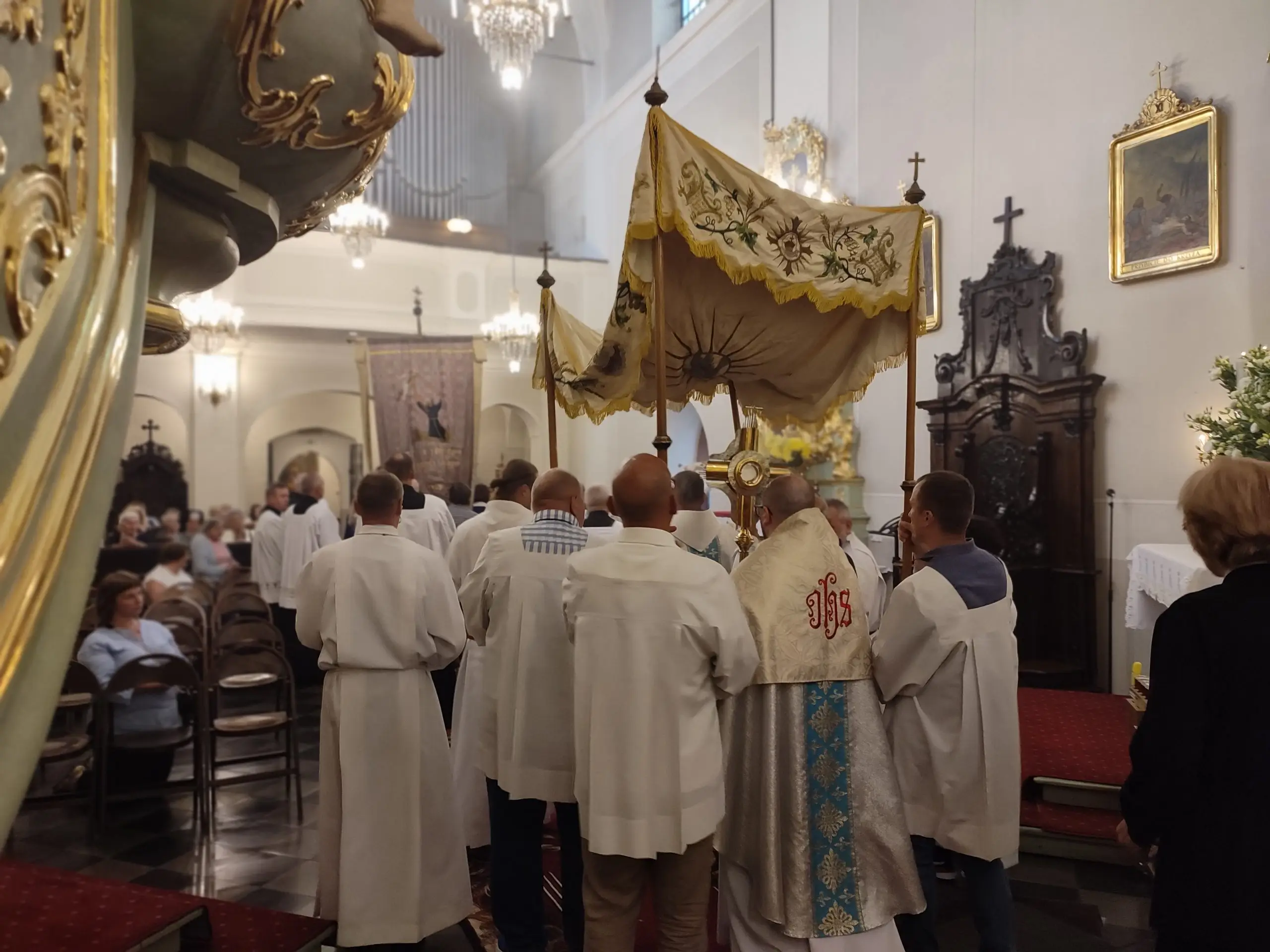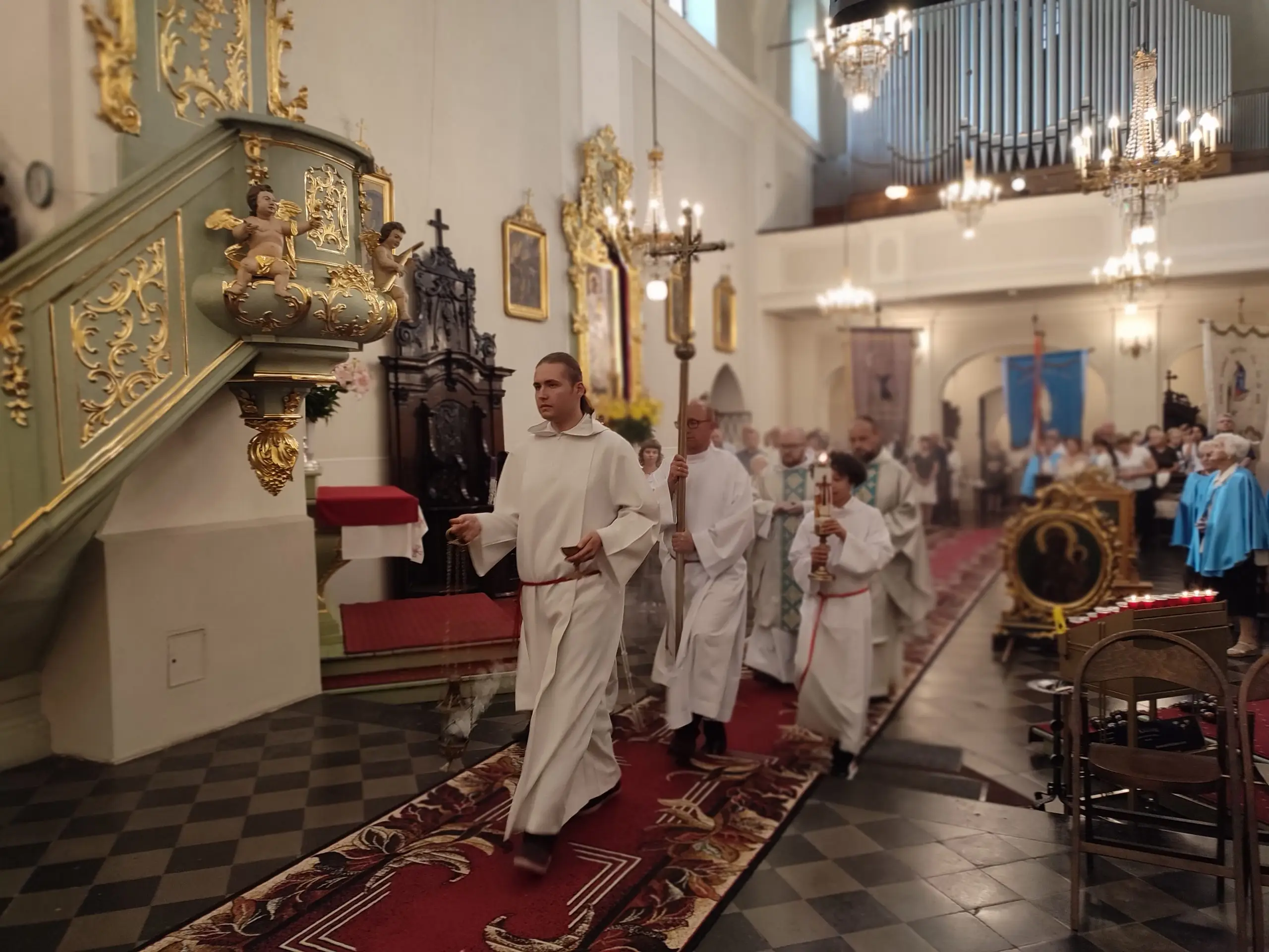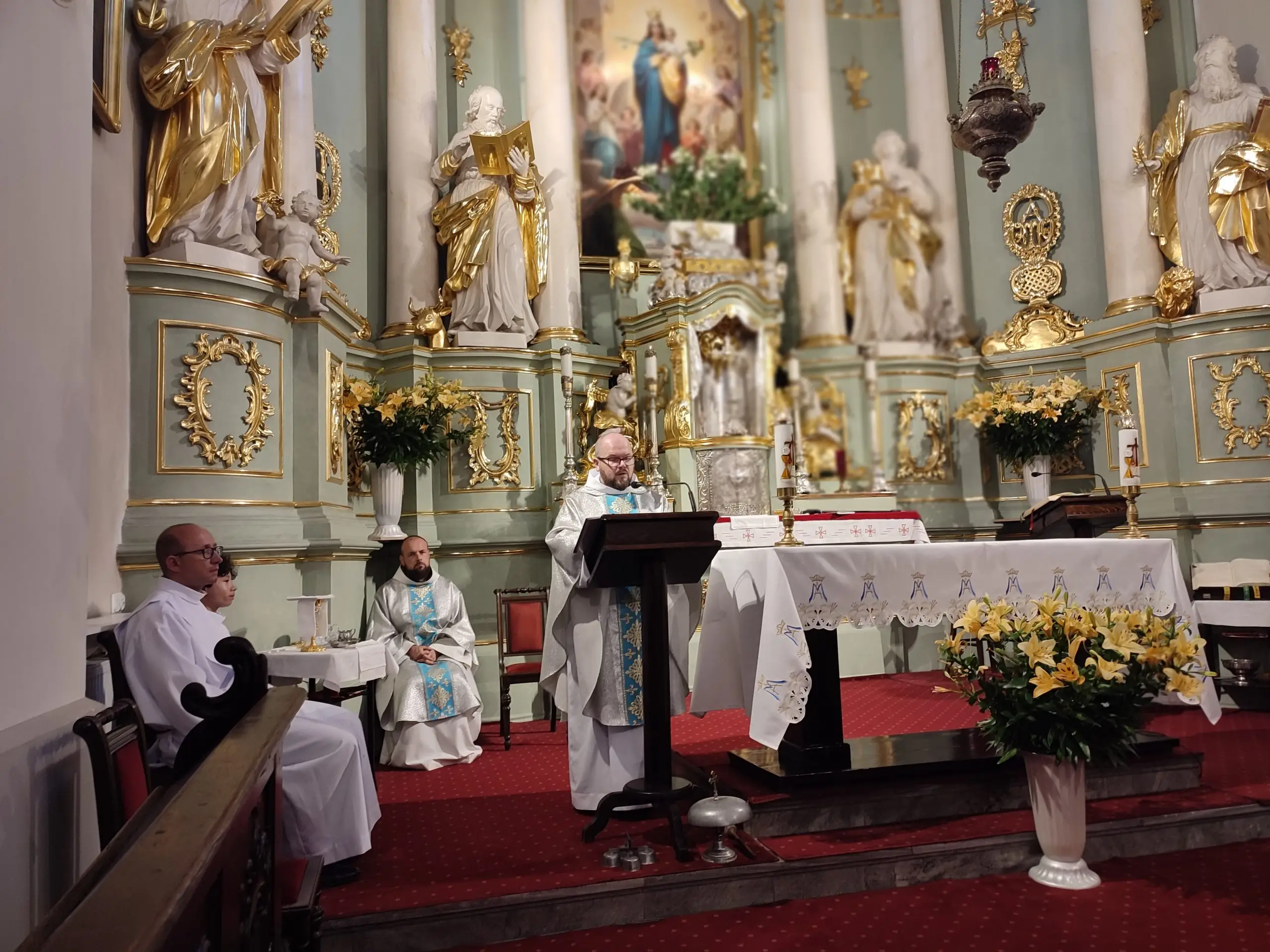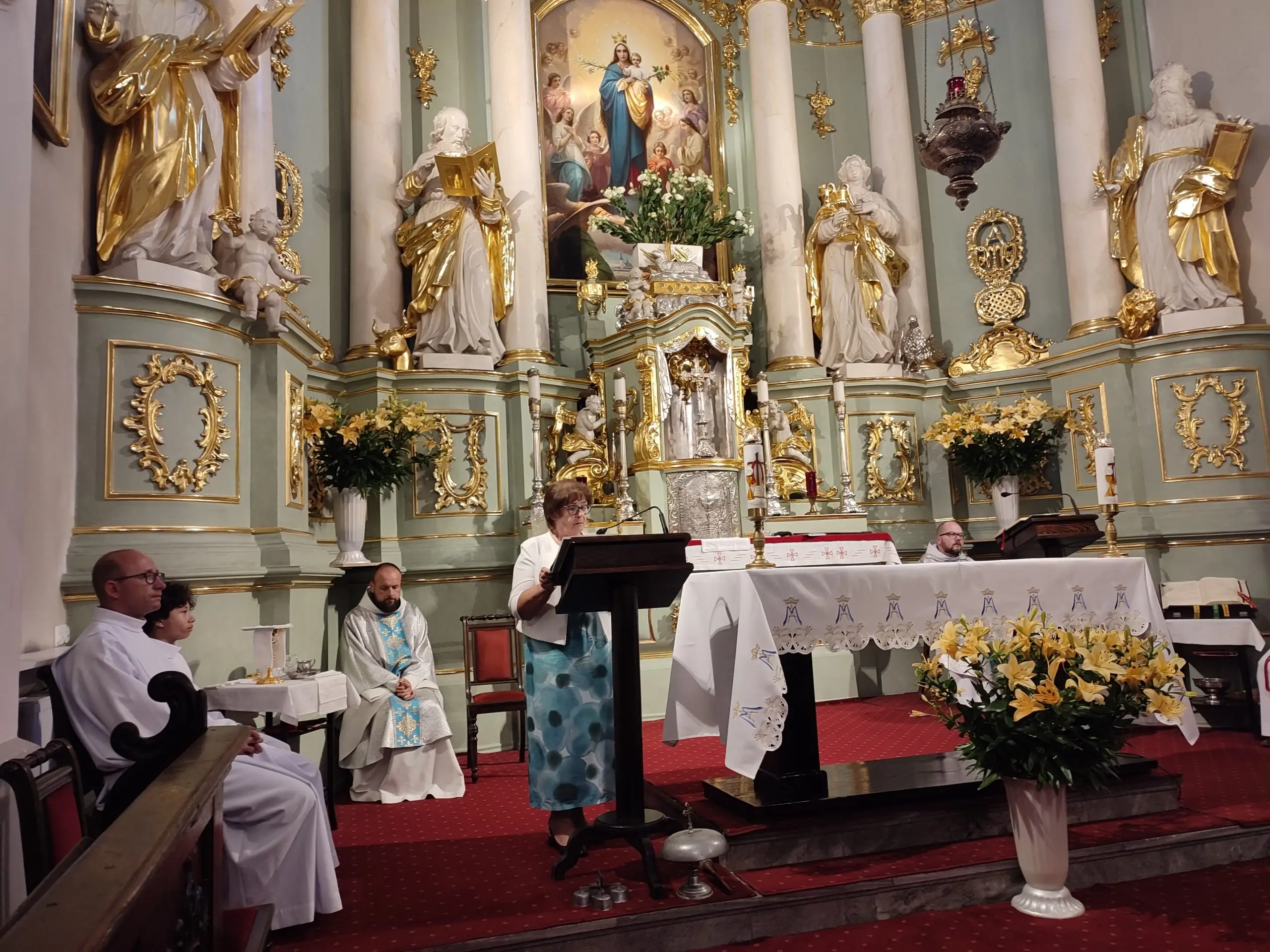 Także w naszej świątyni mogliśmy uroczyście przeżyć ten dzień, tym bardziej, że święto Królowej Aniołów zbiegło się z pierwszą sobotę miesiąca. Zwieńczeniem uroczystej sumy, była procesja Eucharystyczna z udziałem kapłanów naszego dekanatu, asysty niosącej sztandary i feretrony, Zosi sypiącej kwiaty i licznie zebranych wiernych. Chwała Bogu za ten piękny czas.