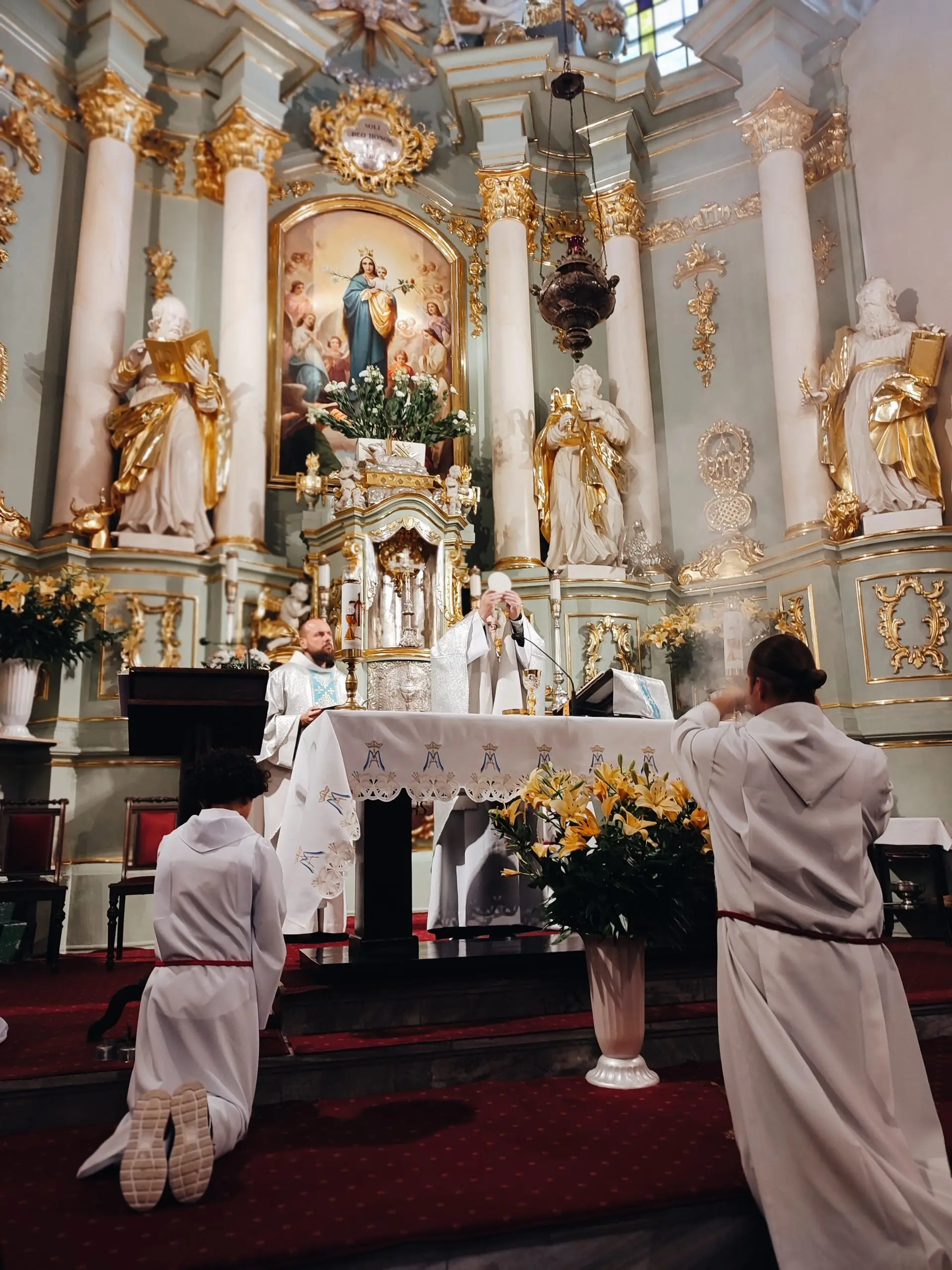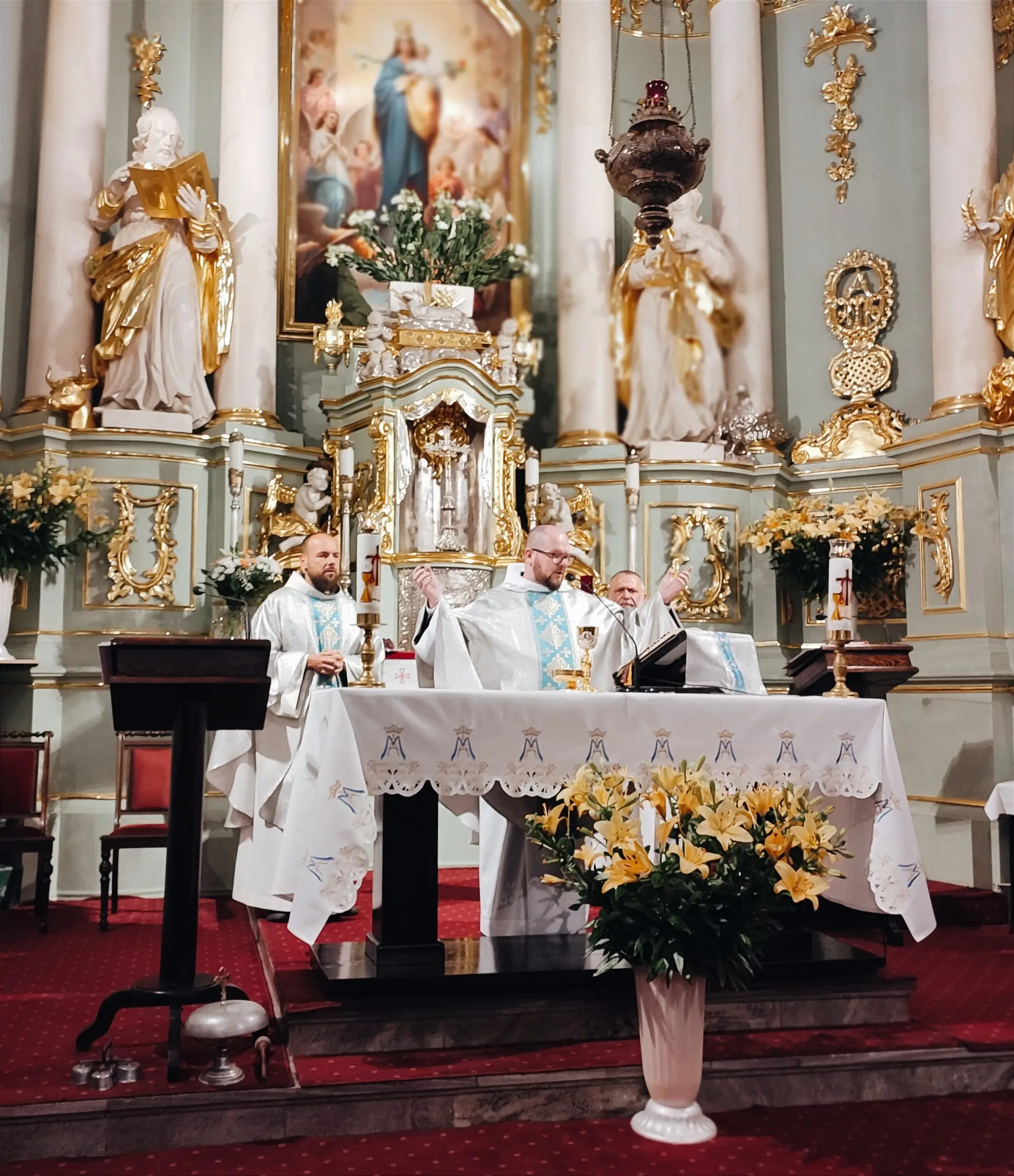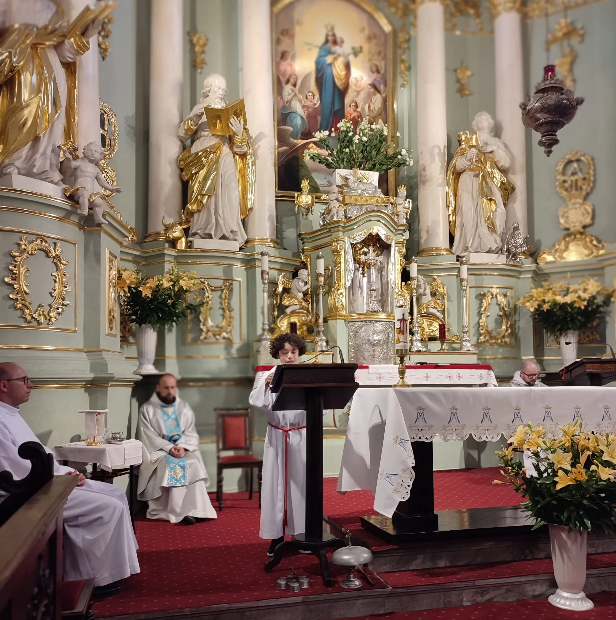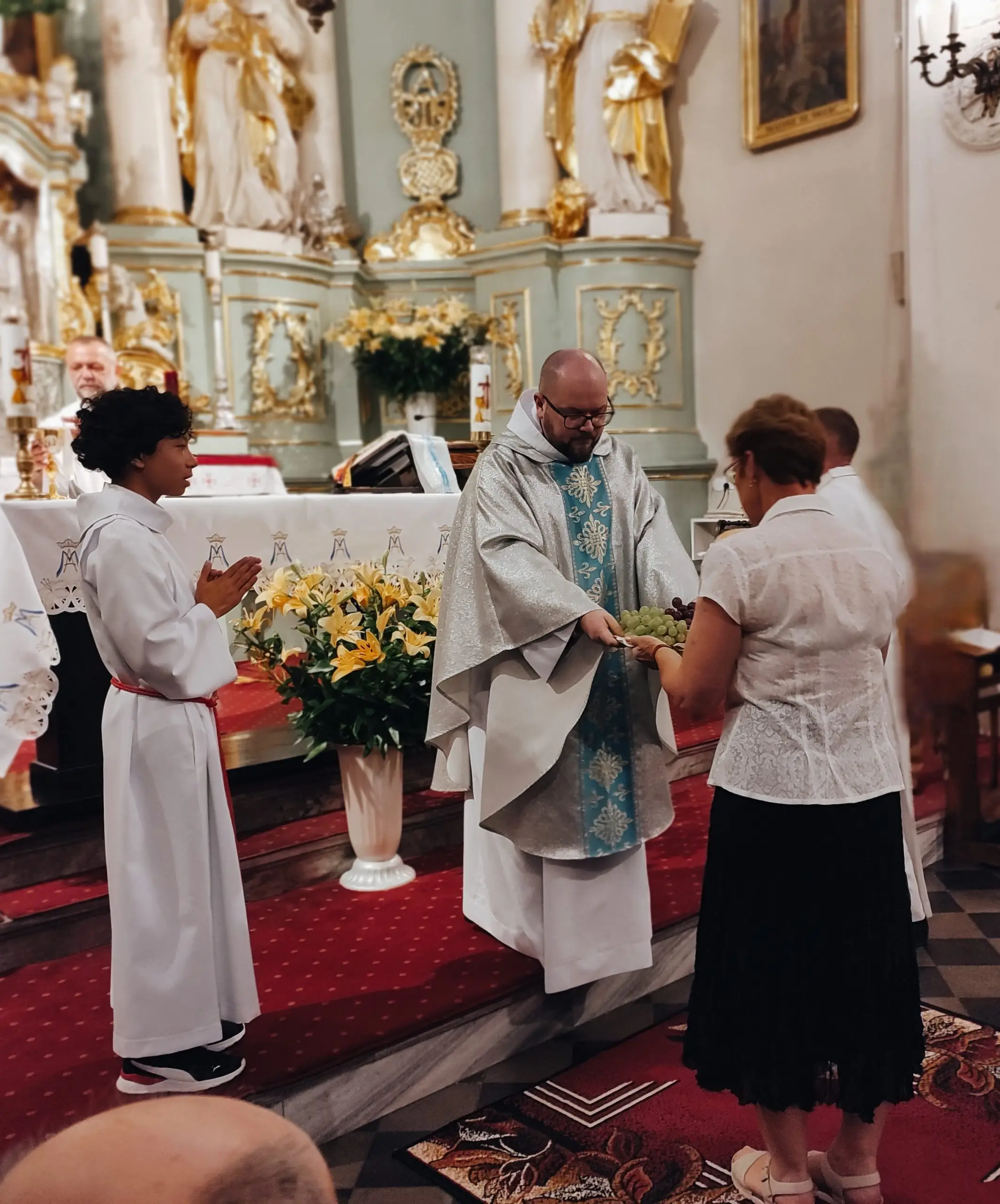 Także w naszej świątyni mogliśmy uroczyście przeżyć ten dzień, tym bardziej, że święto Królowej Aniołów zbiegło się z pierwszą sobotę miesiąca. Zwieńczeniem uroczystej sumy, była procesja Eucharystyczna z udziałem kapłanów naszego dekanatu, asysty niosącej sztandary i feretrony, Zosi sypiącej kwiaty i licznie zebranych wiernych. Chwała Bogu za ten piękny czas.