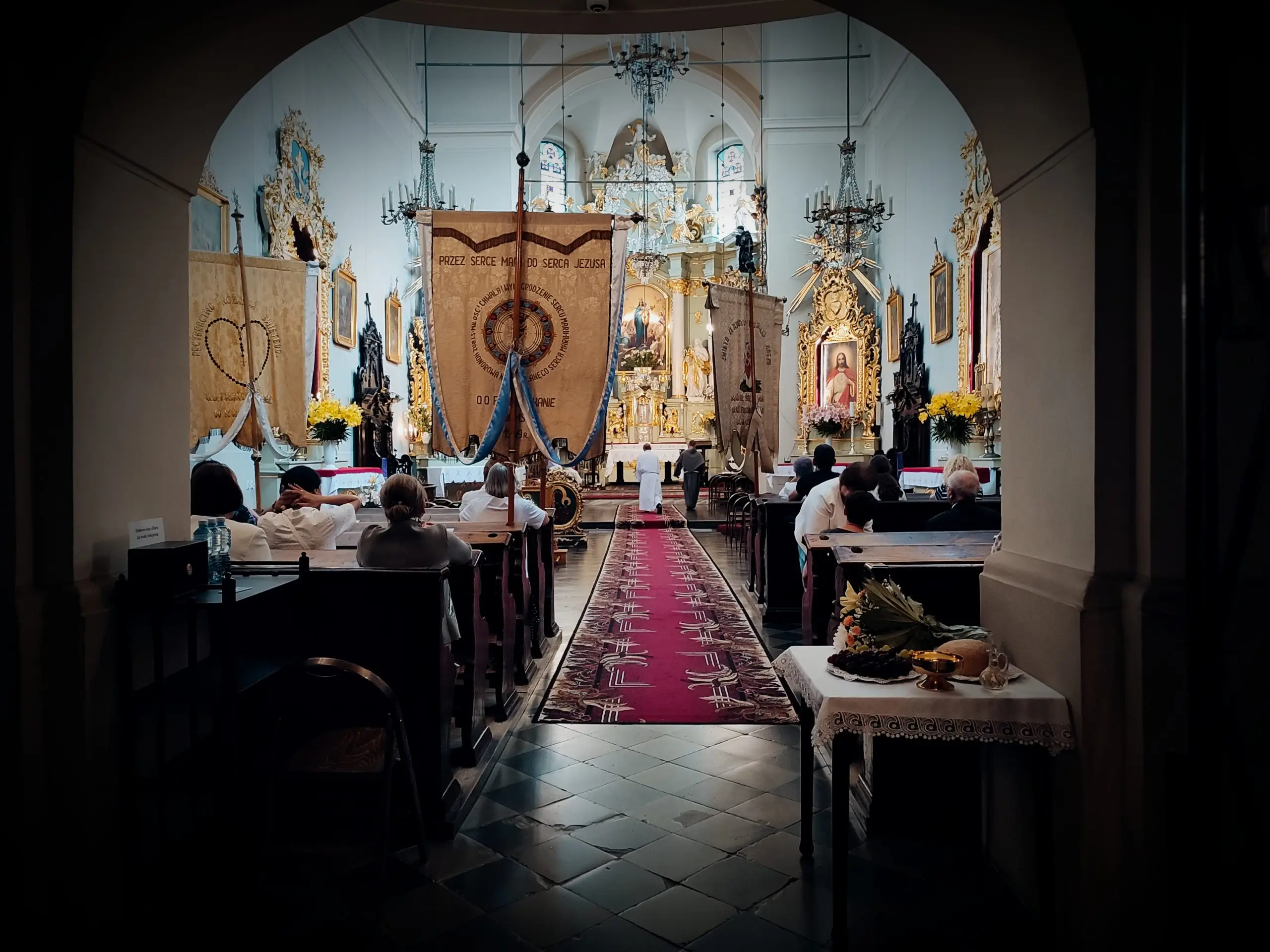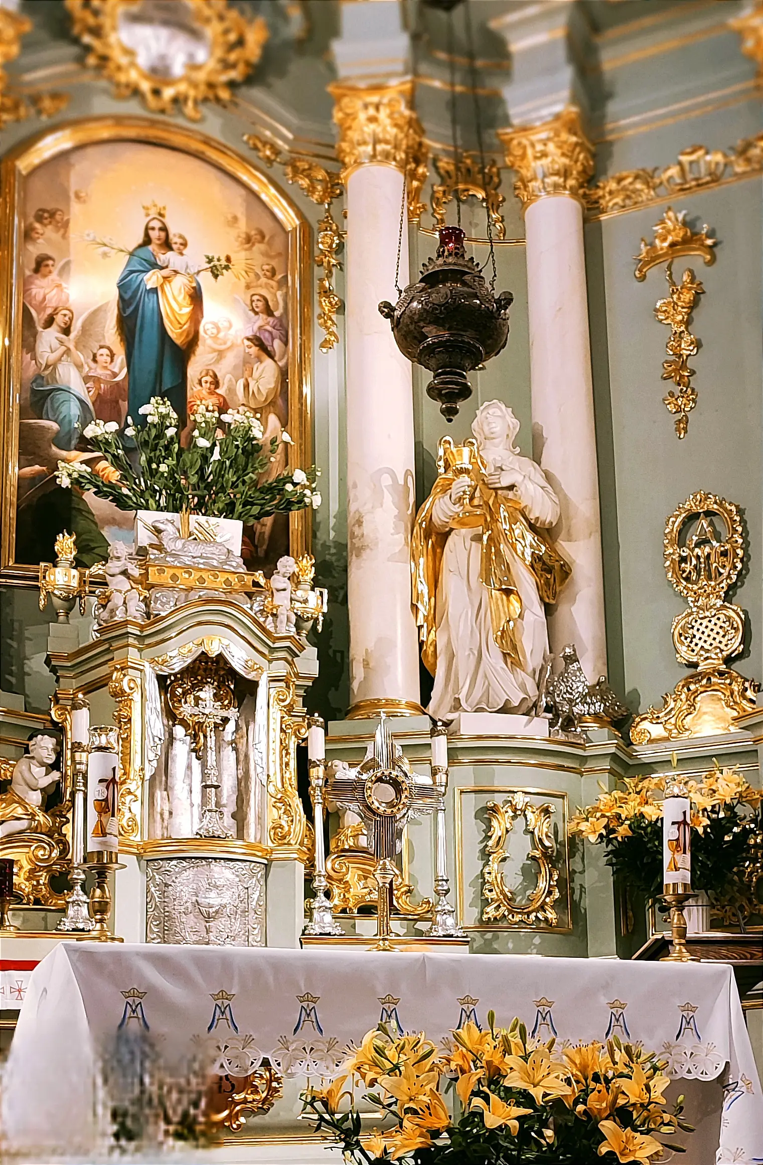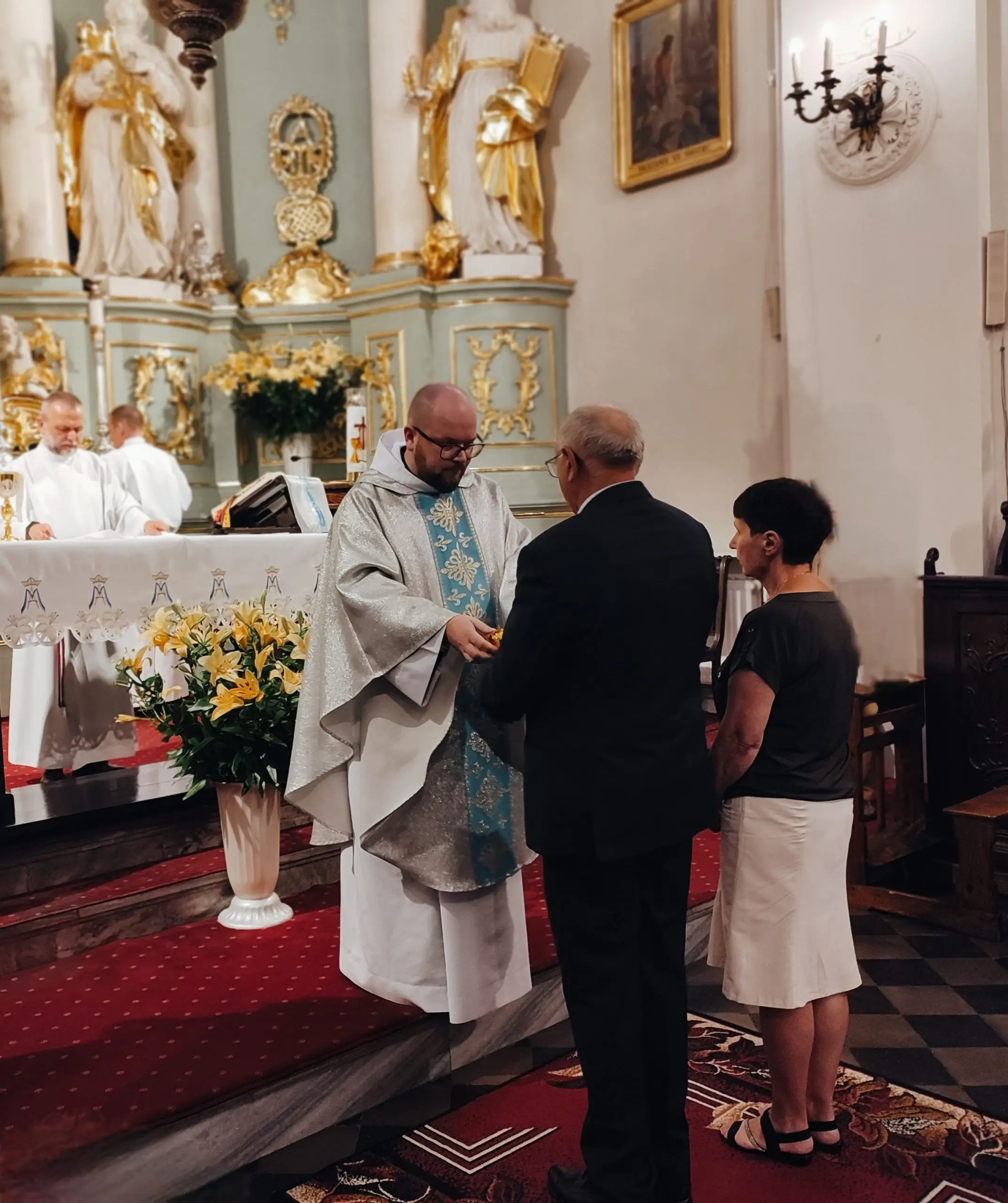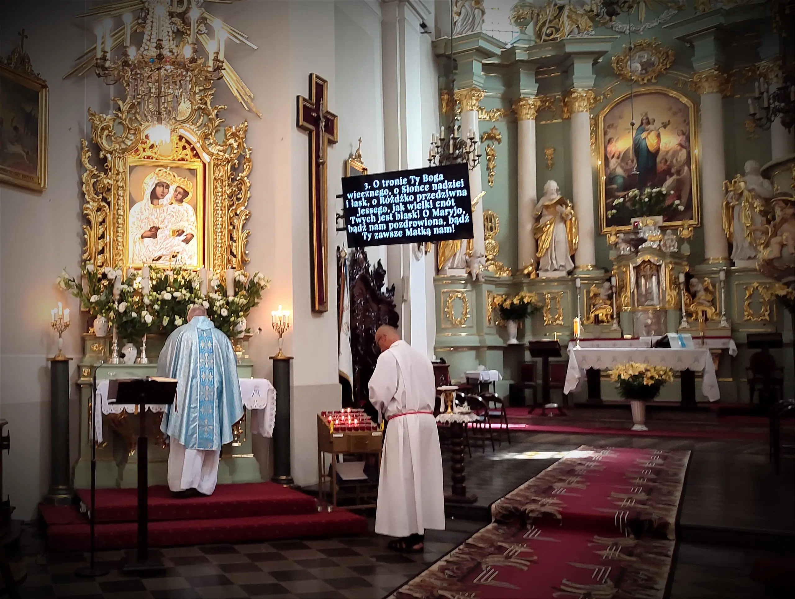 Także w naszej świątyni mogliśmy uroczyście przeżyć ten dzień, tym bardziej, że święto Królowej Aniołów zbiegło się z pierwszą sobotę miesiąca. Zwieńczeniem uroczystej sumy, była procesja Eucharystyczna z udziałem kapłanów naszego dekanatu, asysty niosącej sztandary i feretrony, Zosi sypiącej kwiaty i licznie zebranych wiernych. Chwała Bogu za ten piękny czas.